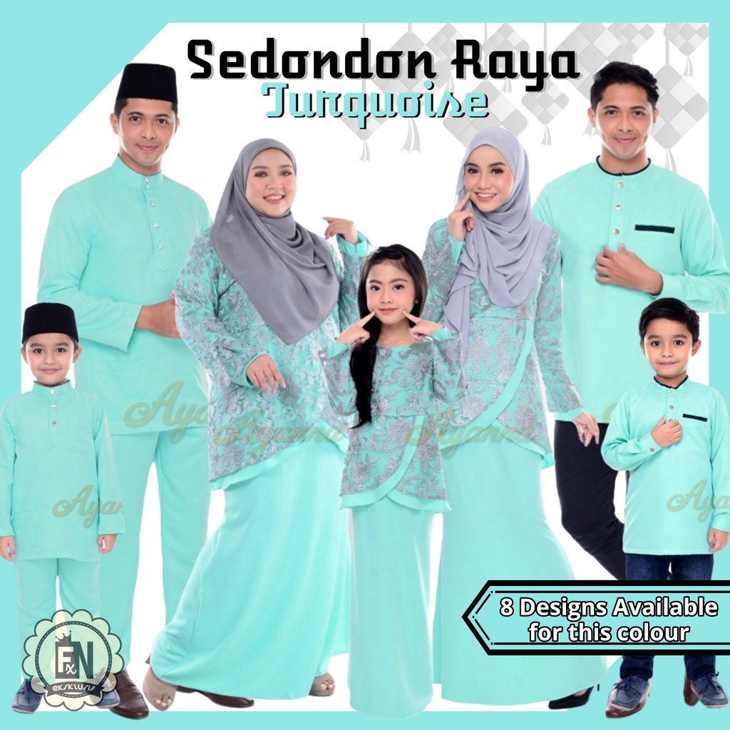 Baju Raya Sedondon Turquoise 2022 T Combo Family Ayanna Baju Melayu Kurung Lace Plussize Shopee Malaysia