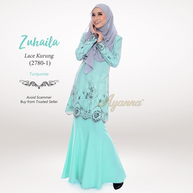 Zuhaila Lace Kurung 2780 1 Turquoise